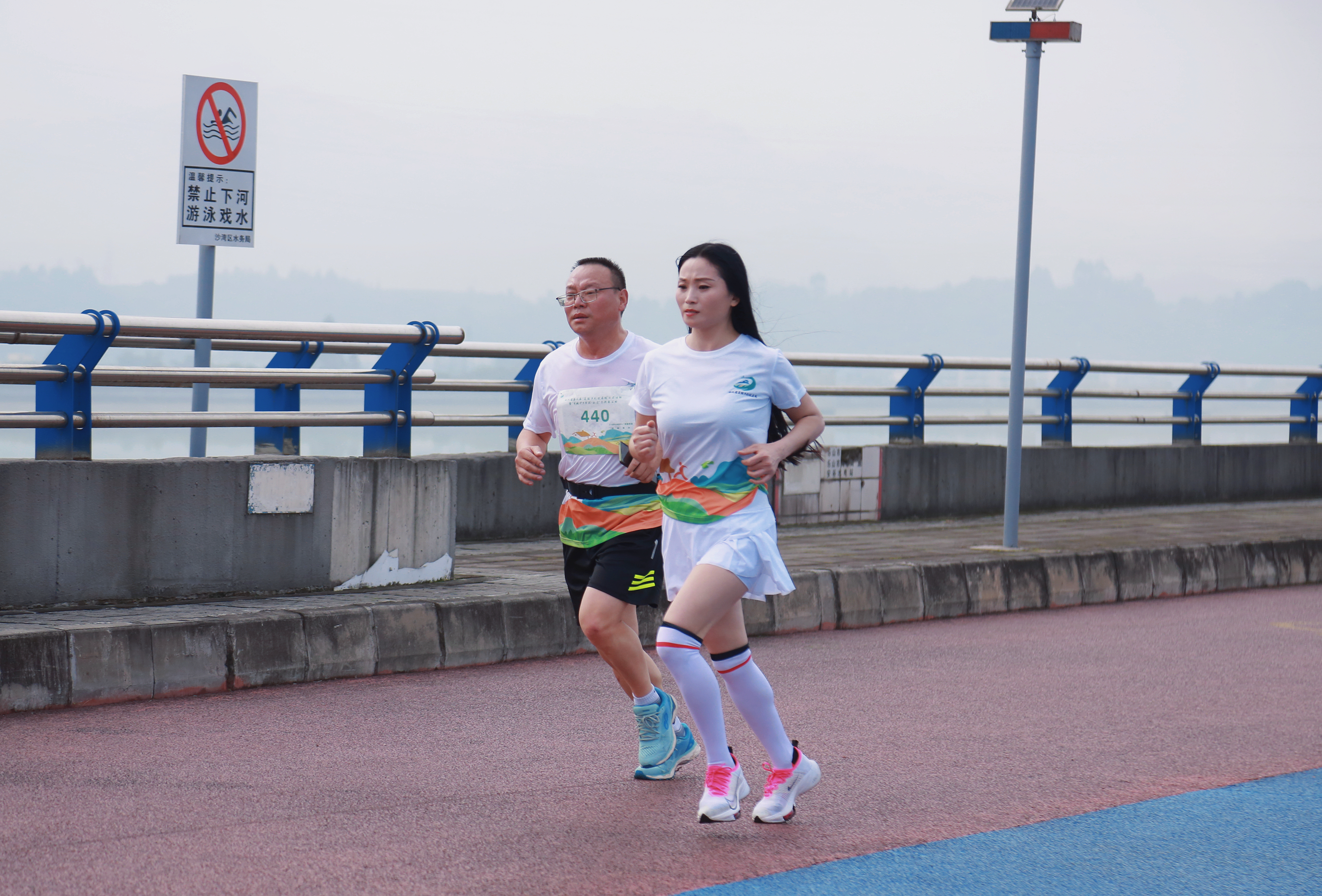 随着比赛的开始,选手们保持着元气满满的状态从沙湾区文创园出发,奔跑在大渡河风景道,一路向终点冲刺。放眼望去,云雾笼罩下的沙湾宛如仙境,选手们的脚下是彩色跑道,右手边是奔腾的大渡河,左手边是田野里勃勃生机的“绿”和一字排开的农村新居,一幅“水清、山绿、景美、民富”的乡村振兴画卷毫无保留地展现在每位选手面前。