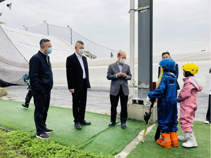 彭维勇一行在调研尖锋旱雪时仔细研究了金针菇旱雪的产品,了解其原材料、使用寿命、安装更换方法等。亲切关心了运动员训练情况。彭维勇指出:一是加强产品研发,通过研发旱雪设施设备、服务产品,优化自主品牌;二是制定赛事规程,以市场化行为举办商业赛事为举措手段吸引参赛选手;三是以竞技化为导向,通过娱乐化吸引社会大众参与冰雪运动,不断为省级、国家级队伍输送人才。