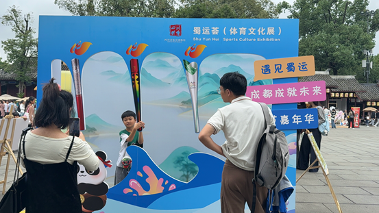 作为体育文化服务公众的具体举措,省体育博物馆将火炬及吉祥物等珍贵藏品实物在现场展示,让博物馆里的藏品“走出去”,在市民身边“活起来”。在聆听工作人员介绍成都于2023年及2025年分别举办大运会和世运会后,现场的王爷爷感慨道:“成都真了不起!”独具创意的展出形式搭建起市民感知城市荣耀的情感桥梁。
