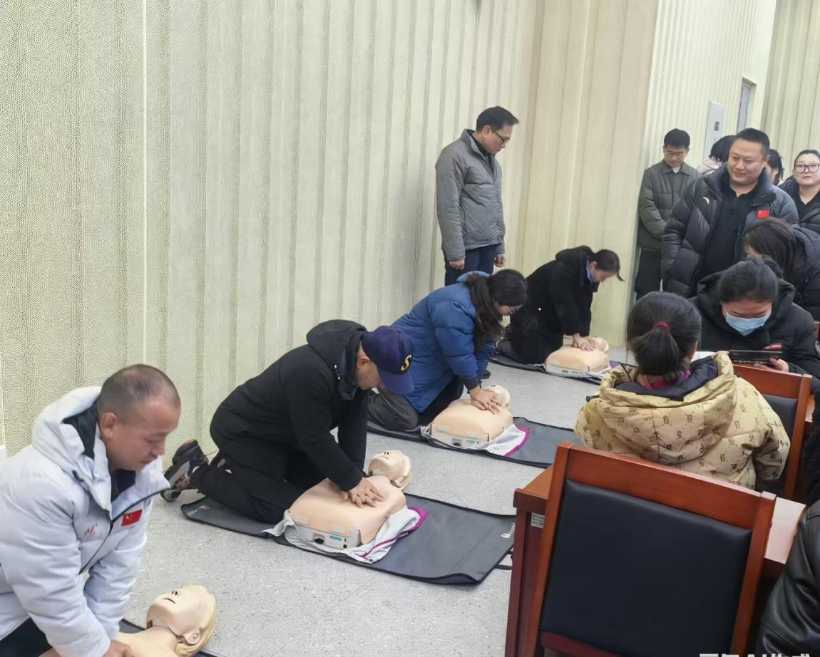 为确保考核不流于形式,考核组采取“日常台账核查+现场随机抽答+实操核验”相结合的模式,对全员进行综合评价。日常考核依据局、校定期与不定期检查结果,结合职工参与安全学习的情况予以评分。现场环节随机对百余名教职工进行一对一提问,考核其应急处置流程与安全责任认知,并组织全体人员实际操作消防器材,进行心肺复苏与AED操作演练,切实推动“人人讲安全、个个会应急”落到实处。