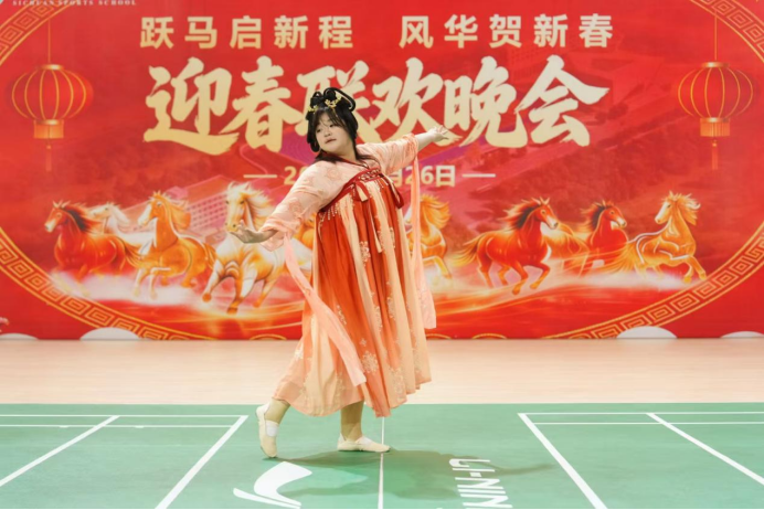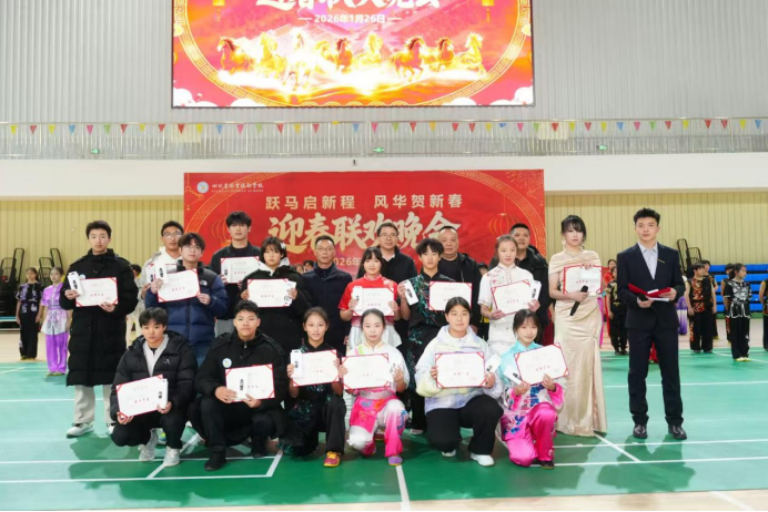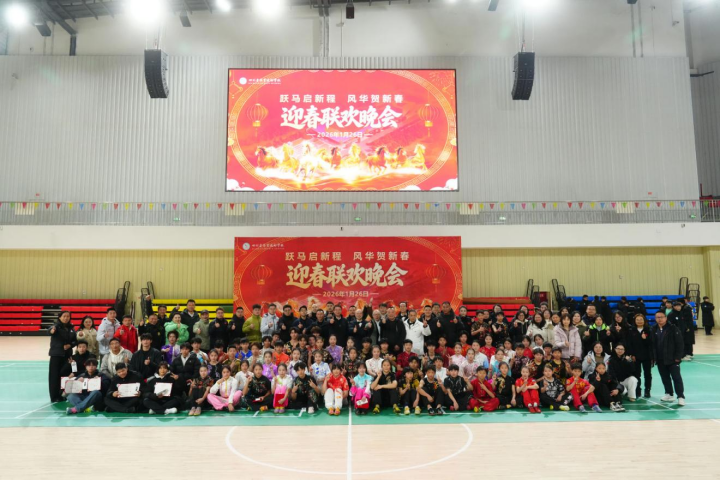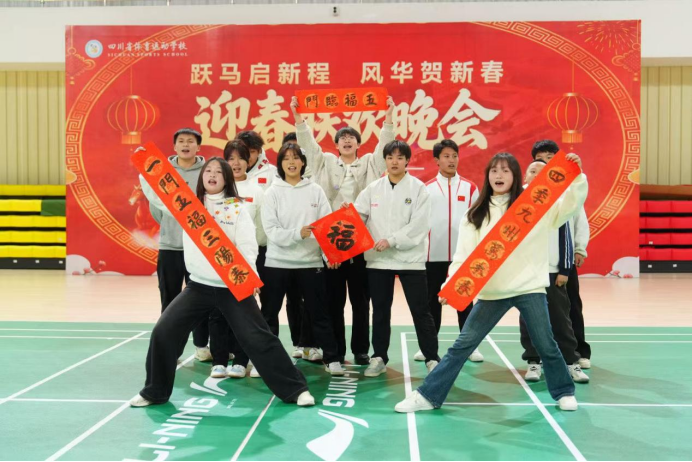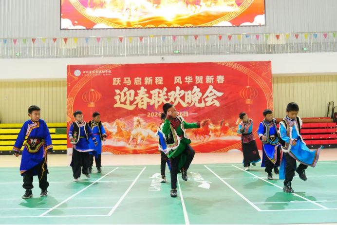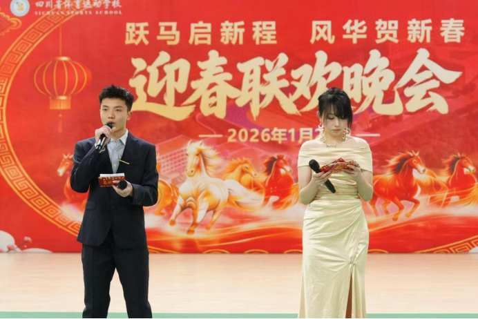 值此新春佳节来临之际,四川省体育运动学校于2026年1月26日晚在篮球馆隆重举行了“跃马启新程,风华贺新春”迎春联欢晚会。全校师生齐聚一堂,共同庆祝新春佳节,现场洋溢着欢乐祥和的节日气氛。