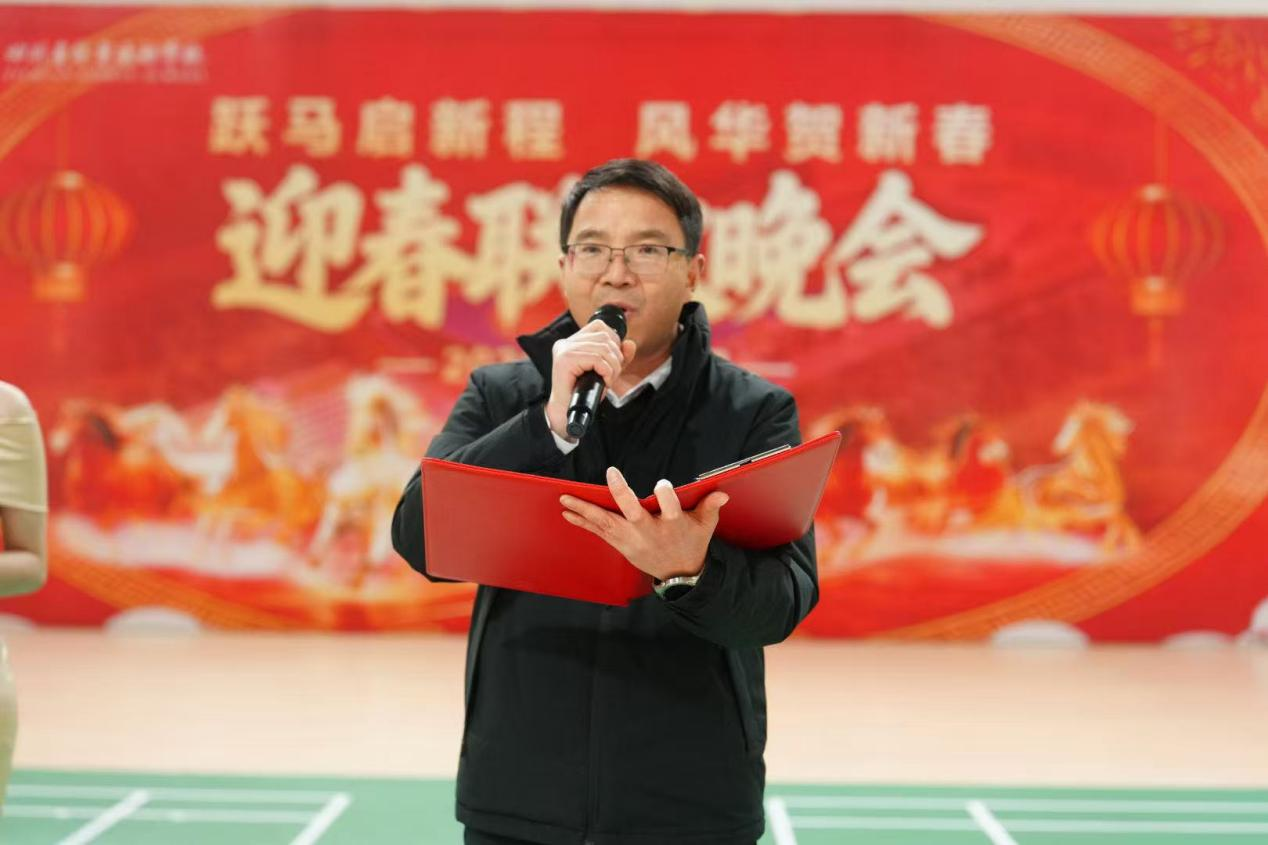 学校党总支副书记、校长胡志鑫在晚会上发表了热情洋溢的新年致辞,向全体师生、省冬管中心短道速滑队,以及在学校异训的吉林省体校田径队的教练员和运动员们致以新春祝福。致辞中,他深情回顾了学校过去一年所取得的辉煌成绩,并展望学校能在未来肩负起专业队“承重墙”的使命,充分发挥在全省青少年体育训练中的龙头作用,着力建设高水平的青训中心,不断弘扬川体精神,在新时代新征程中继续谱写学校发展新篇章。