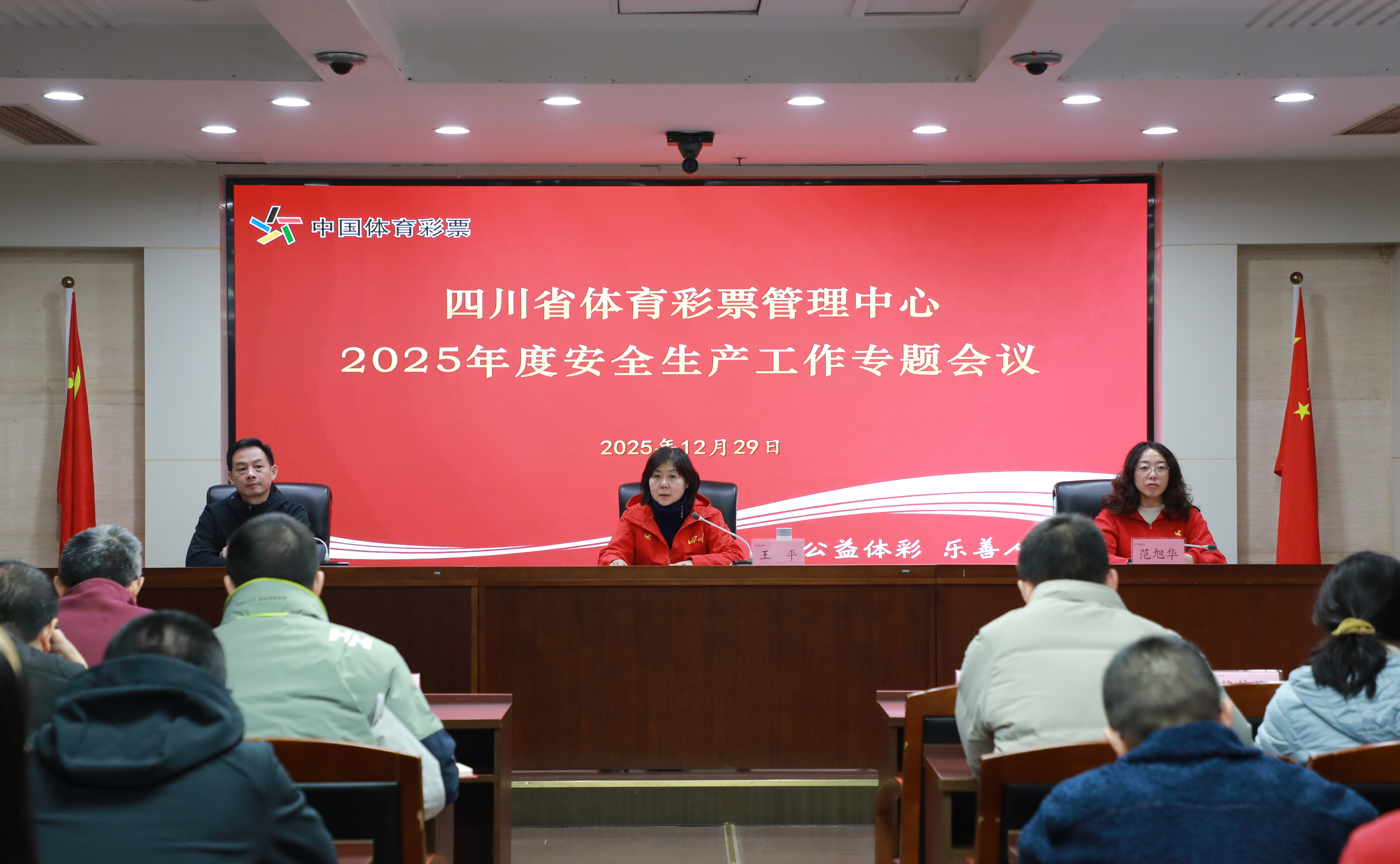 省体彩中心党总支书记、主任王平以“时刻绷紧安全之弦,层层拧紧责任之链,以高水平安全护航四川体彩高质量发展”为主题,对做好下一阶段以及2026年全省体彩领域安全生产工作提出3点要求。