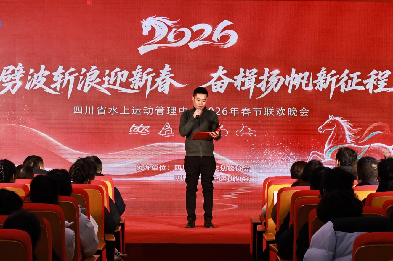 2月10日晚,省水上中心隆重举办以“劈波斩浪迎新春 奋楫扬帆新征程”为主题的迎春联欢晚会,全体干部职工、教练员、运动员、离退休干部代表及家属欢聚一堂,共迎新春。省水上中心领导班子,四川省赛艇皮划艇协会相关人员出席活动。