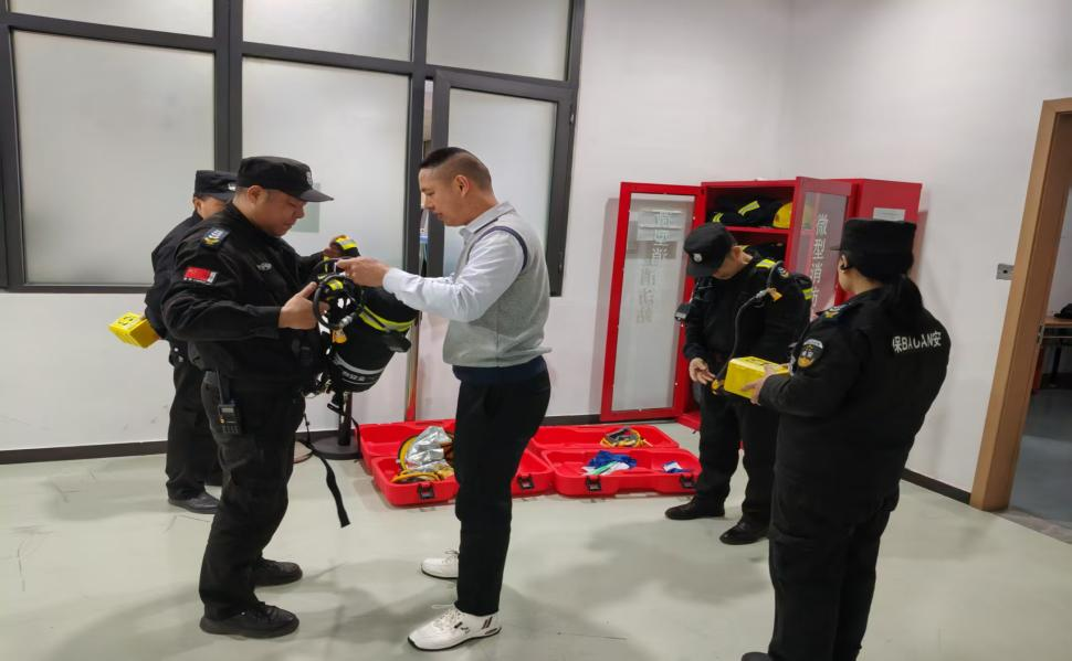本次培训以近期全国发生的火灾事故为警示案例,由保卫科消防管理人员进行现场理论讲解,聚焦我馆消防关键领域及核心工作,系统解读微型消防站空气呼吸器、消防绳、防烟面罩、消防服等器材的性能参数、适用场景及规范操作流程,重点剖析高低压配电室、弱电机房、库房等关键区域的火灾风险点与初期处置技巧。