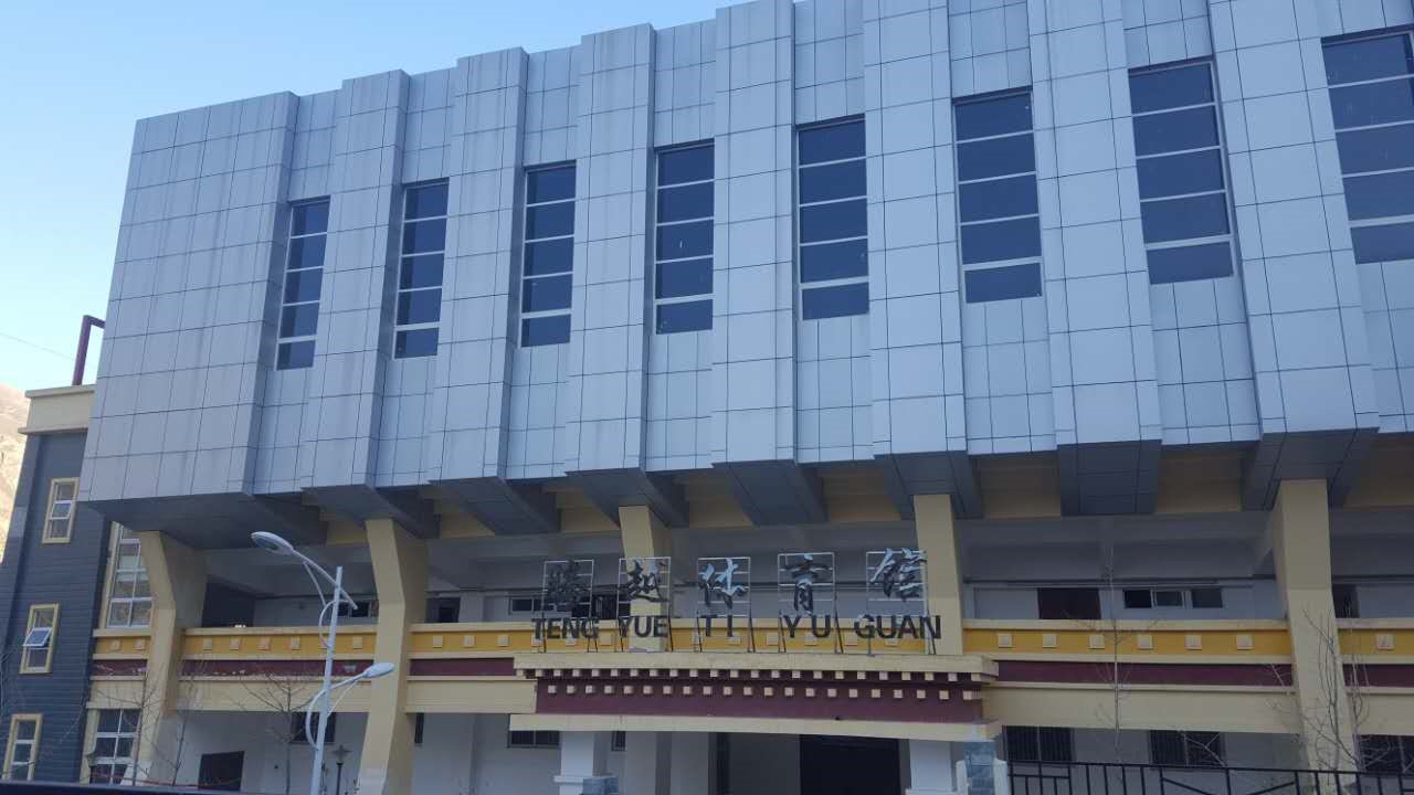 总占地面积7459平方米,室外一个1860平方米的公共活动区域,室内篮球场,全年15万人次在这个体育馆进行健身活动。