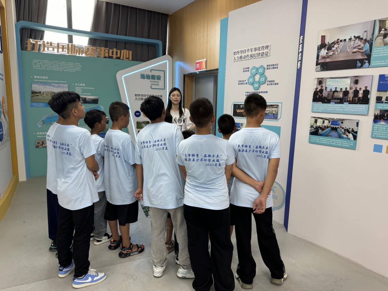 为深入推进体育赋能乡村振兴工作,深化体育帮扶成效,8月21日至24日,中心派驻盐源县平川镇庙子山村驻村干部孙佳带领10名少年走进四川省水上运动管理中心,开启了一场为期4天的沉浸式研学之旅。