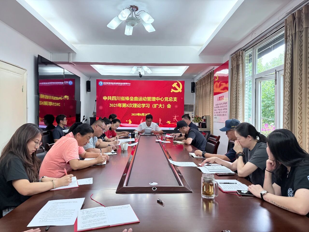 为全面落实习近平总书记在中共中央政治局第二十一次集体学习时强调的“五个进一步到位” 重要要求,深刻领会省委十二届七次全会精神实质,坚定不移推动作风建设向全运备战一线延伸,8月28日下午,省棒垒曲运动管理中心党总支召开2025年第8次理论学习(扩大)会,并对中心深入贯彻中央八项规定精神学习教育工作报告进行了集中审议,通过“复盘”分析学习教育存在不足,提出务实整改举措。中心班子、在蓉党员干部职工及运动队领队参加会议。