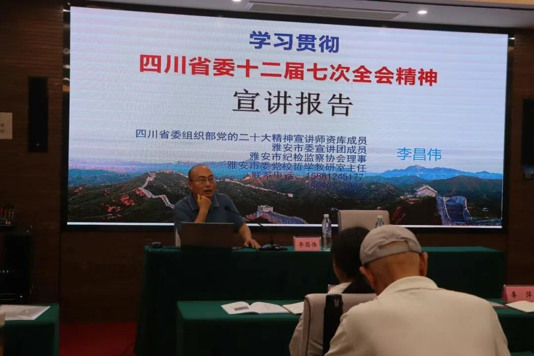 本次培训邀请省委组织部党的二十大精神宣讲团成员、雅安市委党校哲学教研室主任李昌伟作了《学习省委十二届七次全会精神》学习辅导报告。报告从深刻认识全会的重大意义、深刻把握领会全会精神实质、扎实抓好全会精神宣传贯彻各项工作等三个方面,作了深入浅出、生动详实的讲解,让大家找准了工作的结合点、着力点和落脚点,进一步增强了坚定贯彻落实省委全会部署的政治自觉、思想自觉和行动自觉。