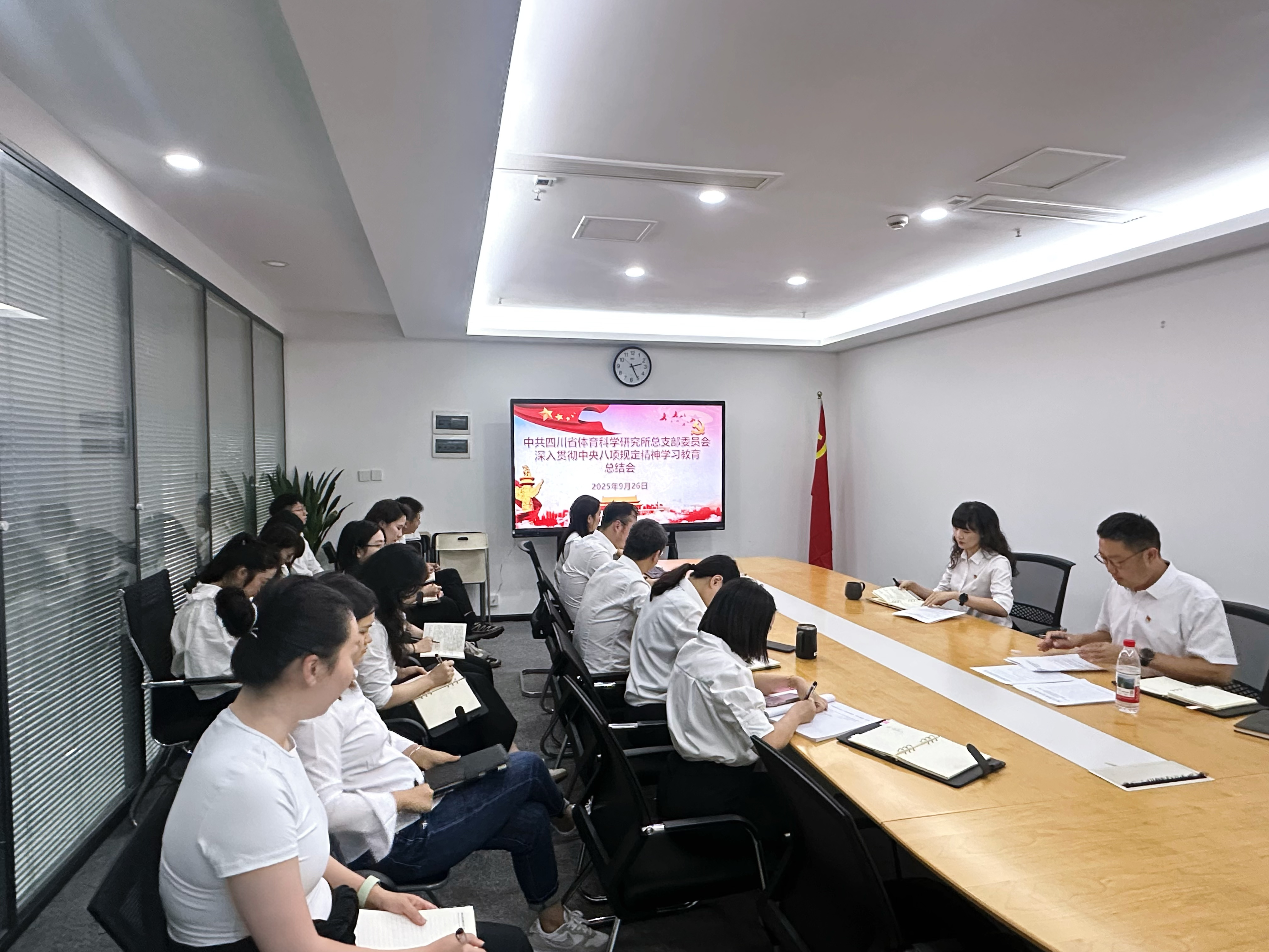 9月26日,四川省体育科学研究所(四川省反兴奋剂中心)召开深入贯彻中央八项规定精神学习教育总结会,会议由党总支书记、所长王茹主持并讲话,全体党员及青年理论小组成员参加会议。