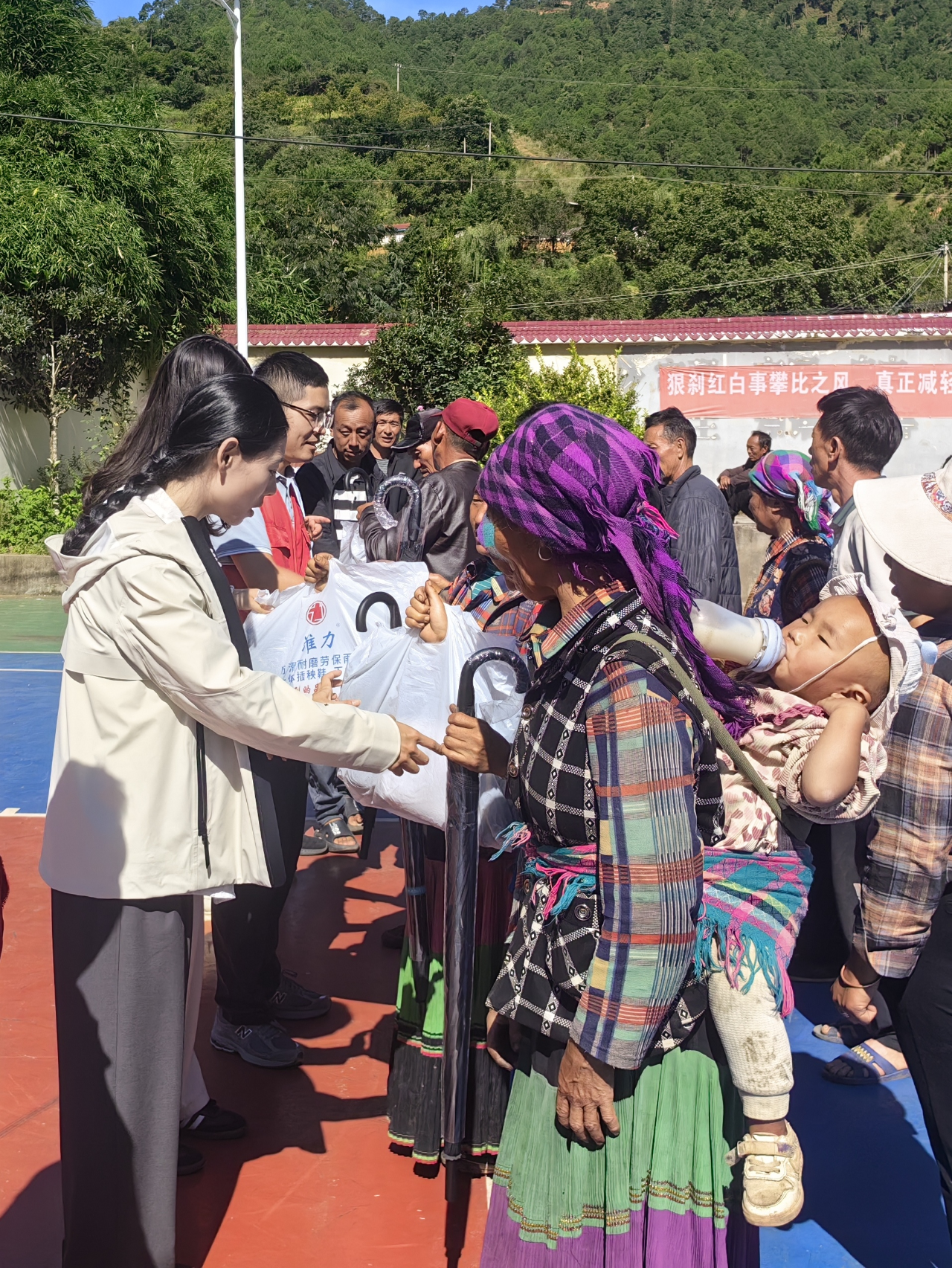 冯玲一行还走进脱贫户家中,送去米、油等生活物资,并与村民亲切交流,细致询问家庭收入、健康状况、子女教育和就业等情况。她鼓励大家:“体育精神强调拼搏和坚持,过日子也一样!有政策帮扶,更要靠自己努力,未来的日子一定会越来越好。”