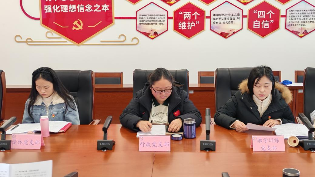 会上,行政党支部、教学训练党支部和退休党支部书记就围绕2025年抓基层党建工作、履行党风廉政建设主体责任情况、个人廉洁从政等情况进行了现场述职。学校党总支委员对三位党支部书记的述职逐一进行了点评和总结,充分肯定了各党支部在工作中取得的成绩和经验,同时也指出了目前存在的不足,并对下一步的工作提出了具体要求。与会人员现场对3名党支部书记开展了民主评议。