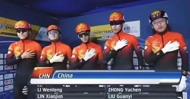 四川运动员宋嘉华与队友夺得短道速滑世锦赛男子5000米接力夺冠