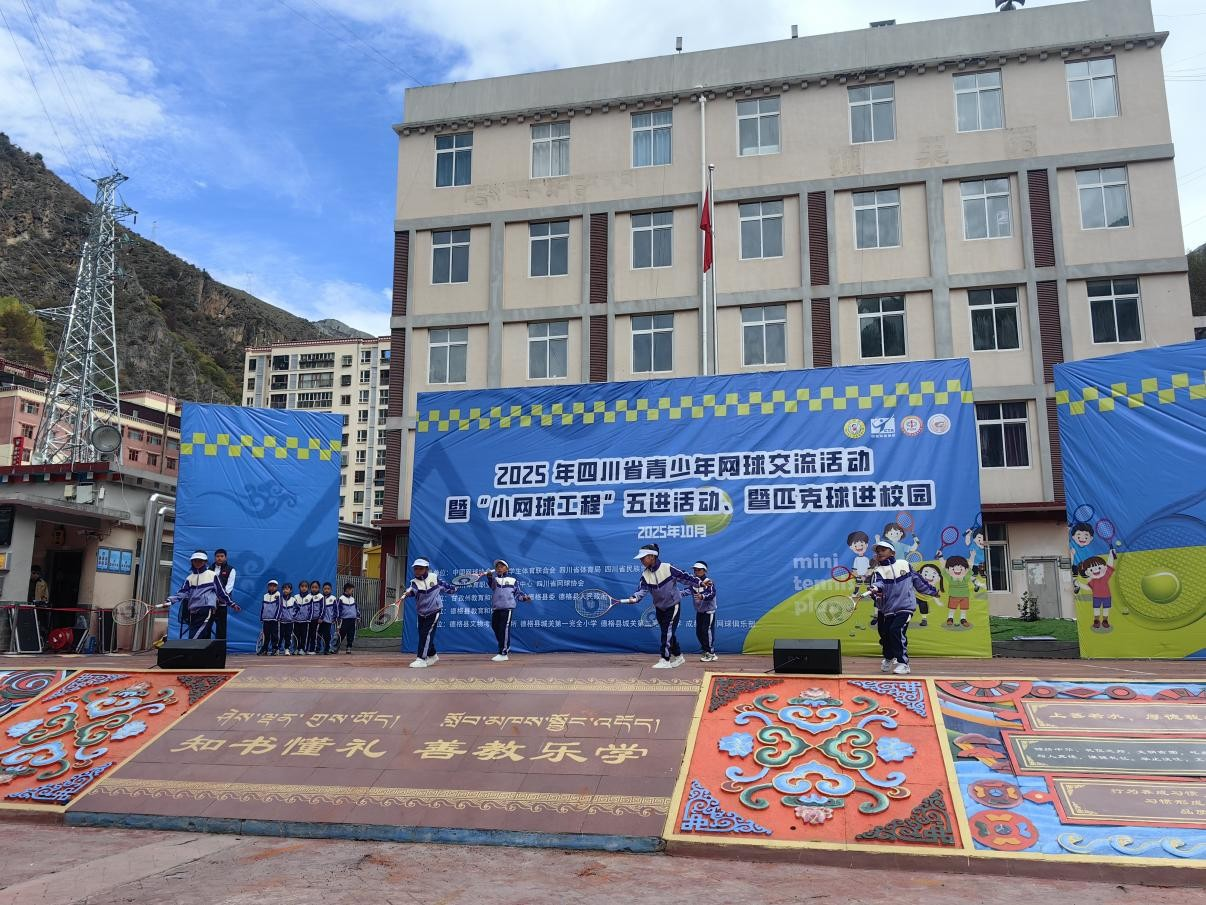 十月高原,阳光灿烂。为深入贯彻习近平总书记“建设体育强国”“帮助青少年在体育锻炼中享受乐趣、增强体质、健全人格、锤炼意志”等重要指示精神,10月10日—12日,由省体育局、省民族宗教委指导,甘孜州教育和体育局、德格县委县政府主办的青少年网球交流活动在甘孜州德格县举行,吸引了两所小学2000余名师生参与。活动立足高原,精准输送专业体育资源,通过小网球进校园、进乡村、进景区等举措,成为体育送教下乡的生动实践。