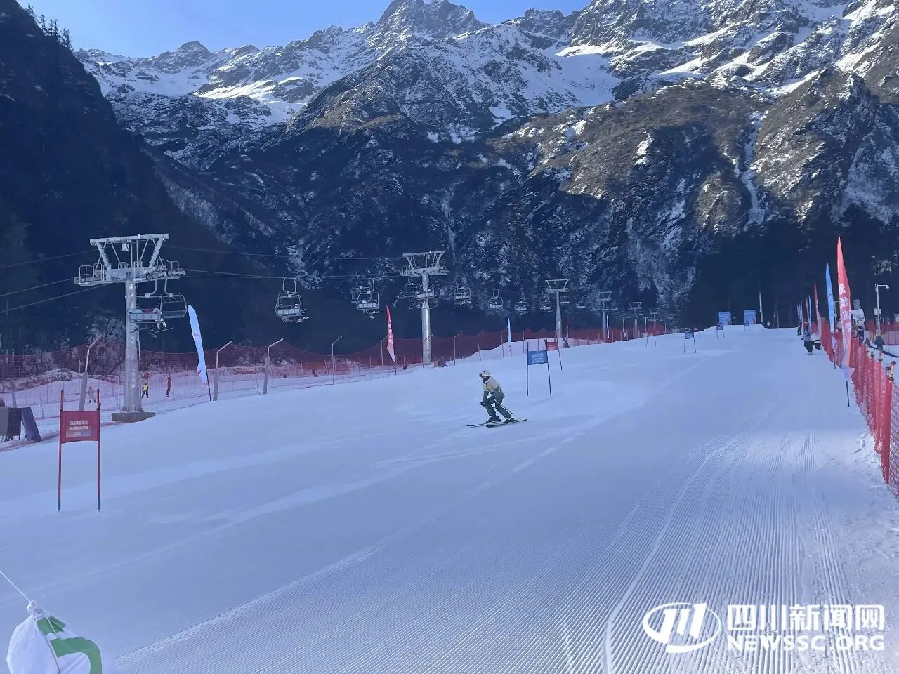 为深入贯彻“冰雪+N”融合发展理念,落实冰雪运动高质量发展相关部署,1月11日,四川省第八届全民健身冰雪季高山滑雪公开赛在汶川羌人谷滑雪场鸣枪开赛。