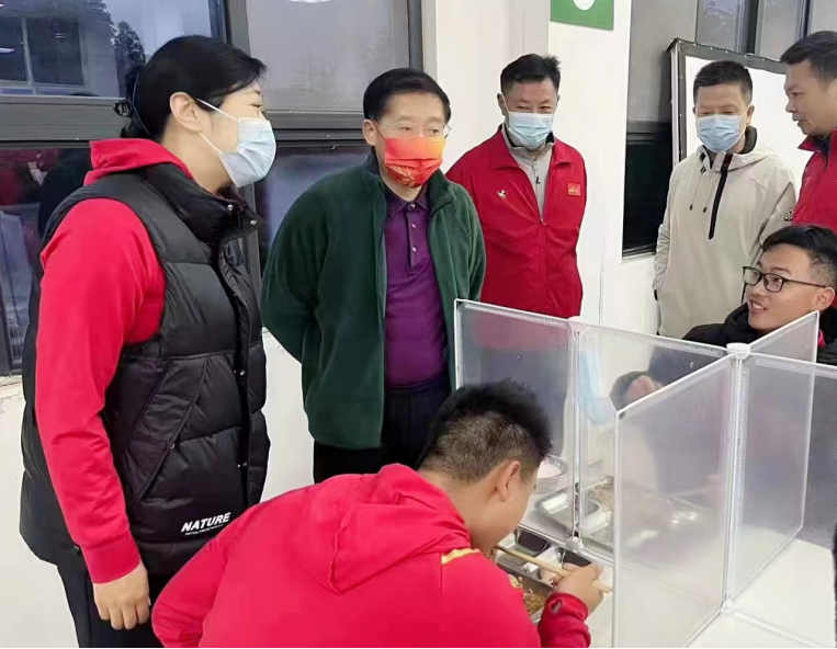 12日一大早,罗冬灵来到省陆校操场检查运动队早操,随后走进食堂与运动员共进早餐,叮嘱食堂工作人员要讲究营养搭配,确保食品安全。