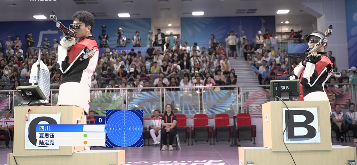 10月12日,中华人民共和国第十五届运动会射击项目在广州市广东射击馆开赛。在10米气步枪混合团体赛中,辽宁组合杜雨宸/刘柏辰夺得冠军,福建组合张倩颖/林峰获得银牌。四川组合夏思钰与陆定克发挥稳定,斩获铜牌,这也是四川健儿在本届全运会上射击项目上获得的首枚奖牌。