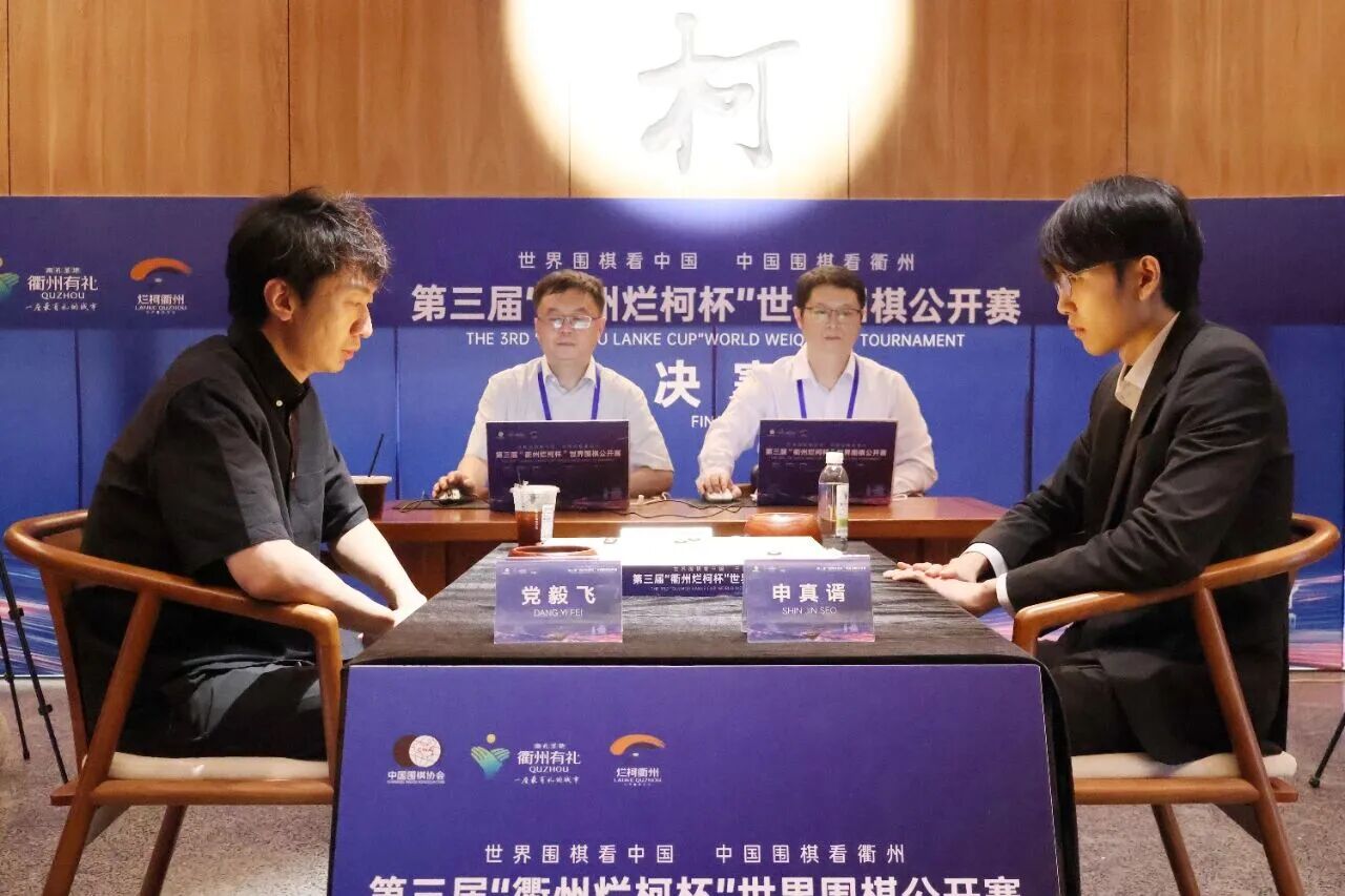 本届比赛本赛党毅飞首轮轮空,从第二轮开始,连胜申旻埈九段、李轩豪九段、许嘉阳九段、李钦诚九段,继2012年BC卡杯、2017年LG杯、2024年梦百合杯和三星杯后,第五次打进世界大赛决赛,其中夺得2017年LG杯冠军。申真谞则是连续第三年晋级衢州烂柯杯决赛,他也是上届冠军。此前两人交手次数多达14盘,党毅飞5胜9负落后。不过衢州是党毅飞的福地,2024年他在这里举行的衢州烂柯杯中国冠军赛中夺冠,这还是他的第一个国内棋战头衔。