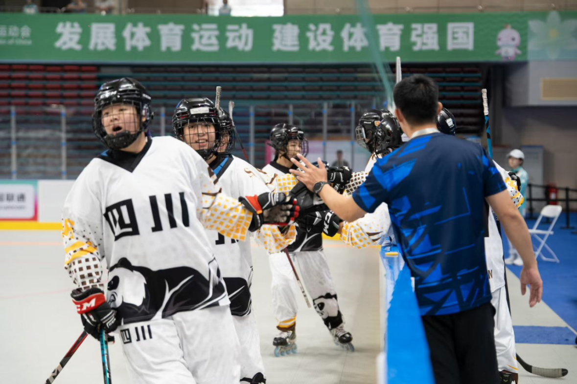 近年来,依托四川“轮转冰”模式,学院冬管中心积极开展青训布点工作,选拔优秀运动员,推动轮滑球的普及推广,使队员实现体能、技术、战术与冰球项目的全面互通。此次全运会的表现便是“换刀上阵”,把冰球中的高强度对抗、精准传接和战术纪律执行成功运用到轮滑球赛场的集中体现。