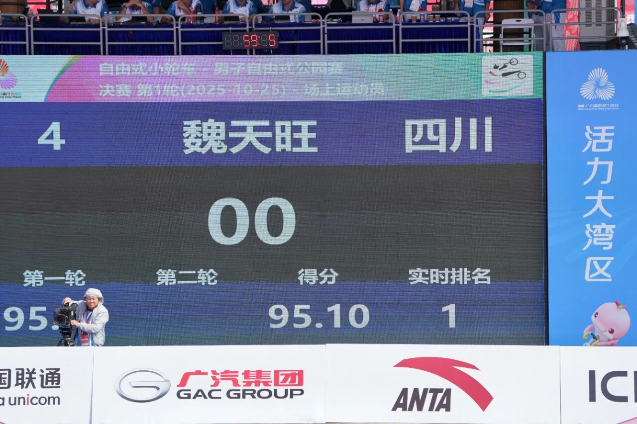 10月25日,第十五届全运会自由式小轮车公园赛迎来决赛争夺。在男子组决赛中,四川选手魏天旺凭借首轮比赛出色的发挥,拿到全场最高的95.10分,摘下四川体育代表团在本届全运会竞技体育项目的首枚金牌。