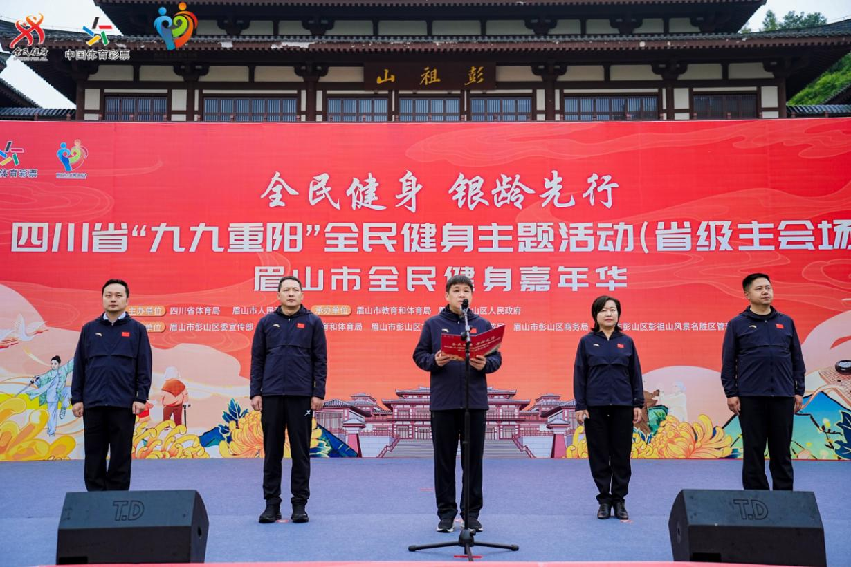 金秋送爽,寿山迎宾。10月29日,2025年四川省“九九重阳”全民健身主题活动(省级主会场)在眉山市彭山区彭祖山景区启动。一场以“全民健身 银龄先行”为主题的全民健身嘉年华活动缓缓拉开序幕,两千余名老年群众与健身爱好者齐聚“中华养生文化第一山”,用舒展的动作、轻快的脚步、欢乐的笑声、挥舞的汗水,在重阳佳节书写一幅健康活力的生活图景。活动以彭祖山长寿养生文化为纽带,打造“体育+文旅+民俗”融合新场景,让传统节日焕发健身新活力。