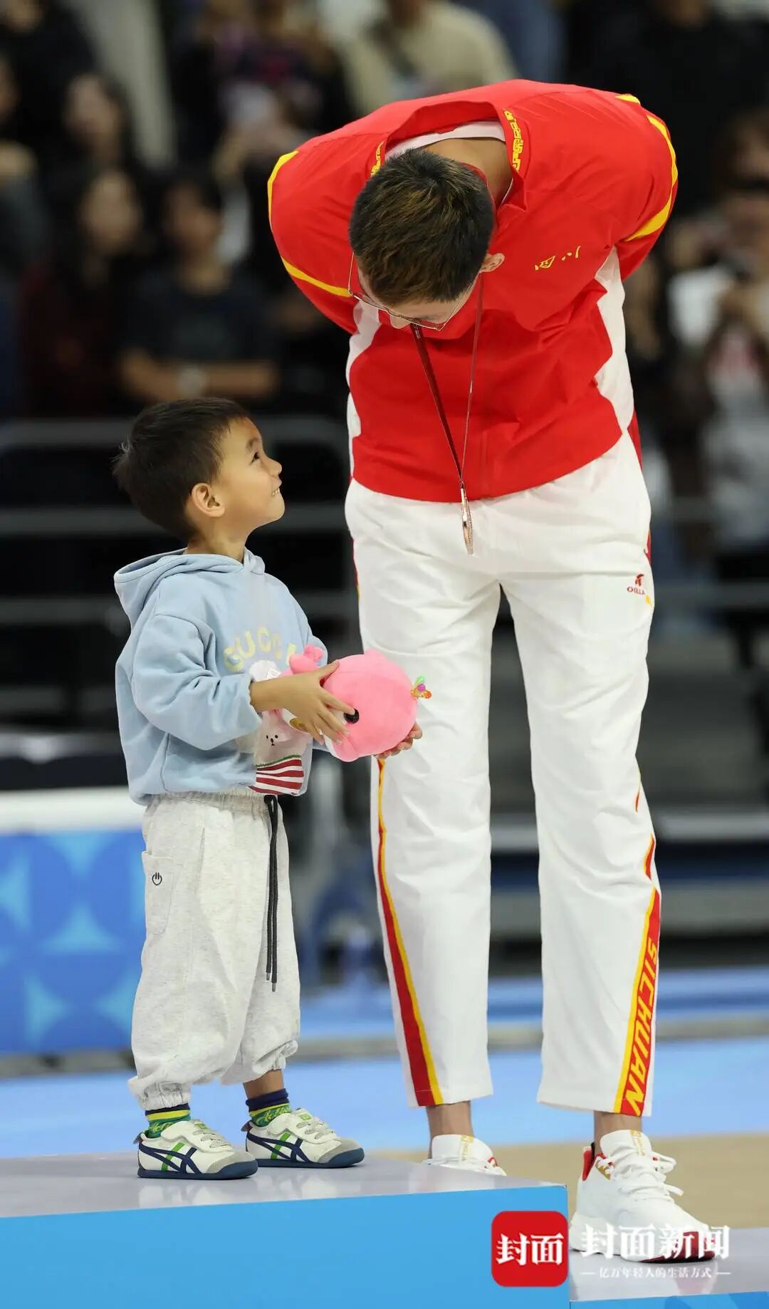 四川男篮全运会摘得铜牌,周琦带小儿子一起上台领奖