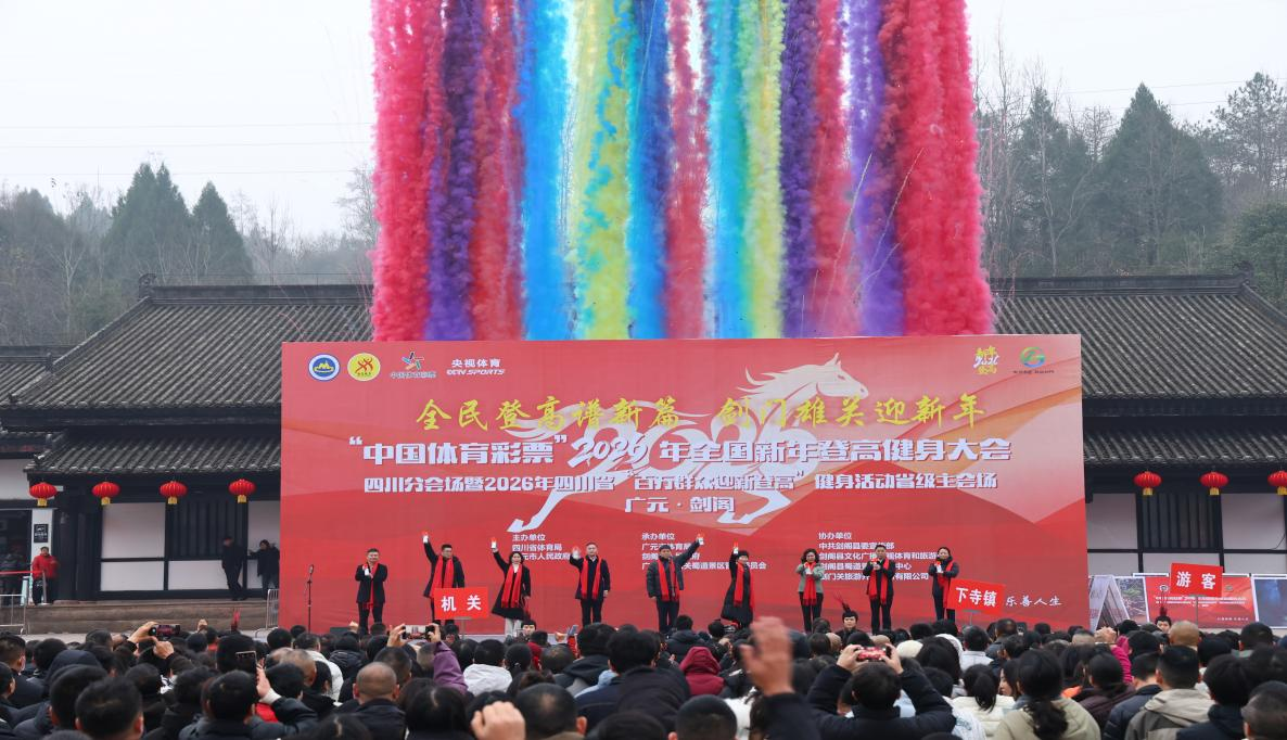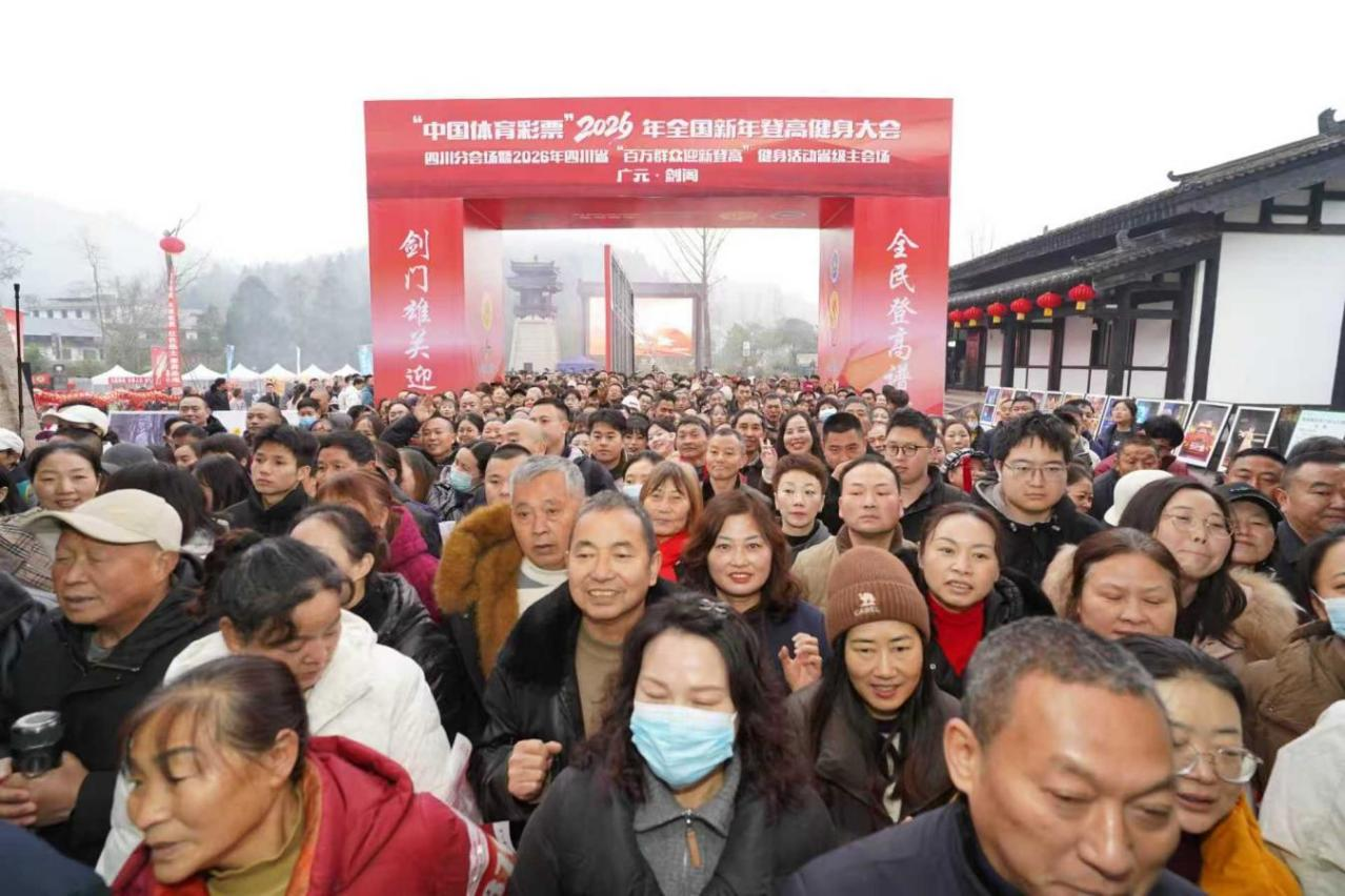 为深入贯彻落实体育强国战略和习近平总书记来川视察重要指示精神,推动全民健身与全民健康深度融合。12月30日,“中国体育彩票”2026年全国新年登高健身大会四川分会场暨2026年四川省“百万群众迎新登高”健身活动省级主会场在广元市剑阁县剑门关景区热烈启动。四川省体育局副局长朱明,广元市人民政府副市长刘素英,广元市剑门关蜀道景区党工委副书记、管委会主任廖兴泉,广元市体育局局长段菲,剑阁县委书记范为民,剑阁县委副书记、县长黄燕等省、市、县相关领导出席活动,与2200名各界群众共同登高祈福、喜迎新年。