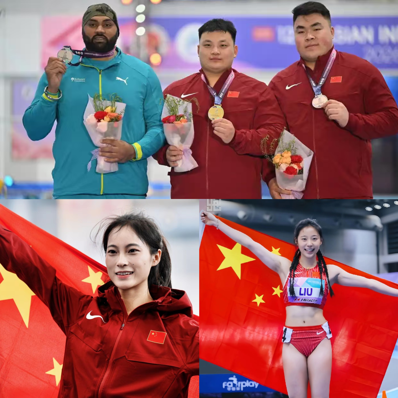 赛场上,3名运动员沉着应战、稳定发挥:陈成雨在男子铅球决赛最后一投掷出20.07米夺冠并打破赛会纪录;李智双以6米39获得女子跳远银牌;刘峡君跑出7.38秒,刷新个人最好成绩(PB)摘得女子60米铜牌。