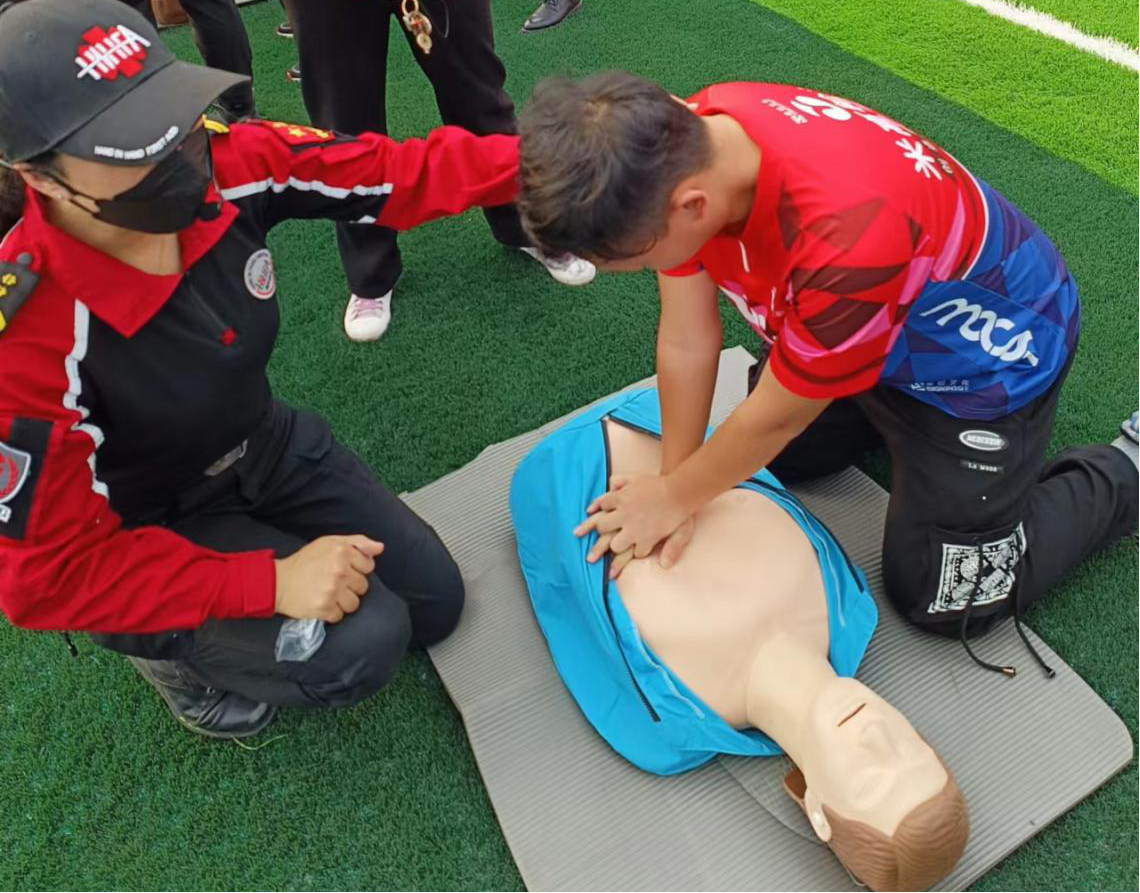 实操演练环节中,在场的学员在讲师的指导下认真地在模拟人体道具上进行心肺复苏的实操练习。讲师耐心解答学员的各种提问,手把手指导大家如何临危不乱,为紧急病患争取“黄金时间”。体验式教学让大家进一步巩固所学知识,了解掌握现场救护操作要领,提升应急救护技能。