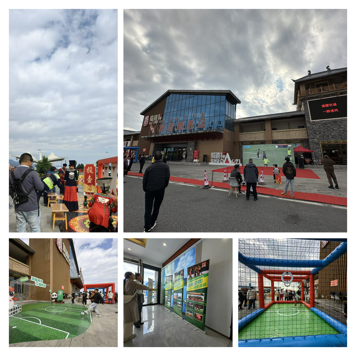 在室外互动区,体育元素同样处处可见。室外大屏实时直播川超比赛,为游客打造沉浸式观赛平台;四川足球文化展板生动呈现四川足球的发展历程;无人机足球三人对抗赛吸引众多游客现场组队参与,体验科技与体育融合的竞技乐趣;足球射门挑战区则成为孩子们的乐园,现场欢声笑语不断,洋溢着运动的活力。