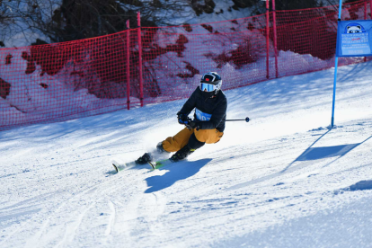 冬日的太子岭滑雪场,银装素裹,不仅参赛选手在滑雪场上为比赛热身,还吸引了众多滑雪爱好者前来体验。上午10点,比赛在和煦的阳光中拉开帷幕。参赛选手们从雪道上飞驰而下,以S形曲线的滑法迅速绕过8个旗门外侧,最后冲过终点。比赛选手漏掉一个旗门就会被取消成绩,如果摔倒后无法继续比赛也会被取消成绩。裁判岳丰润介绍,“这个比赛既考验参赛选手的技巧,又考验选手的速度,对参赛选手的要求还是比较高的。”