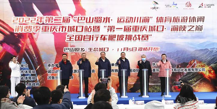 畅游巴山蜀水,乐享运动川渝。2022年第二届“巴山蜀水·运动川渝”体育旅游休闲消费季重庆市城口站暨“第一届重庆城口·渝陕之巅全国自行车爬坡挑战赛”启动仪式在河鱼乡举行。