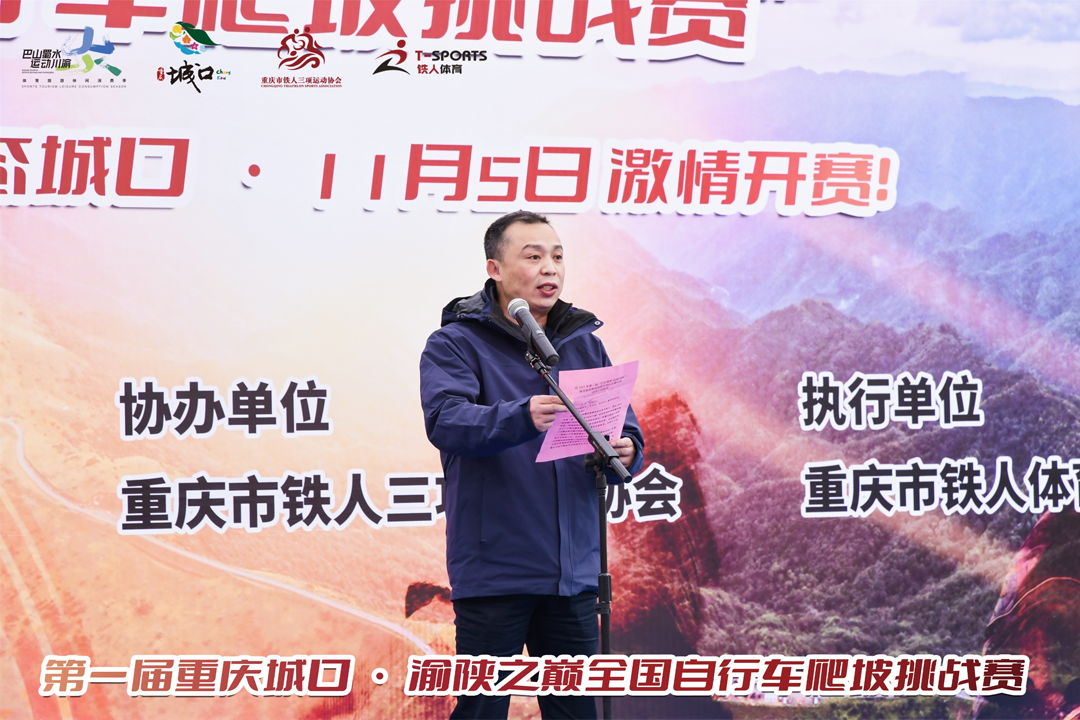 重庆市体育局副局长杨贵山、四川省体育局二级巡视员文碧伟、重庆市文旅委二级巡视员陶宏宽、四川省体育局产业处处长李毅、重庆市体育局产业处处长卢鸿毅共同启幕。城口县委副书记、县长董奕锋出席启动仪式并致辞。