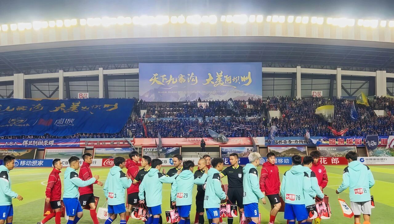 今晚的茂县体育场,还没等球员上场,气氛就先嗨了!大屏幕上一会儿是阿坝州的绝美雪山海子,一会儿是绵阳的酷炫科技画面,九寨沟的蓝和绵阳的红,直接来了一场“颜值PK”,看得人眼花缭乱~