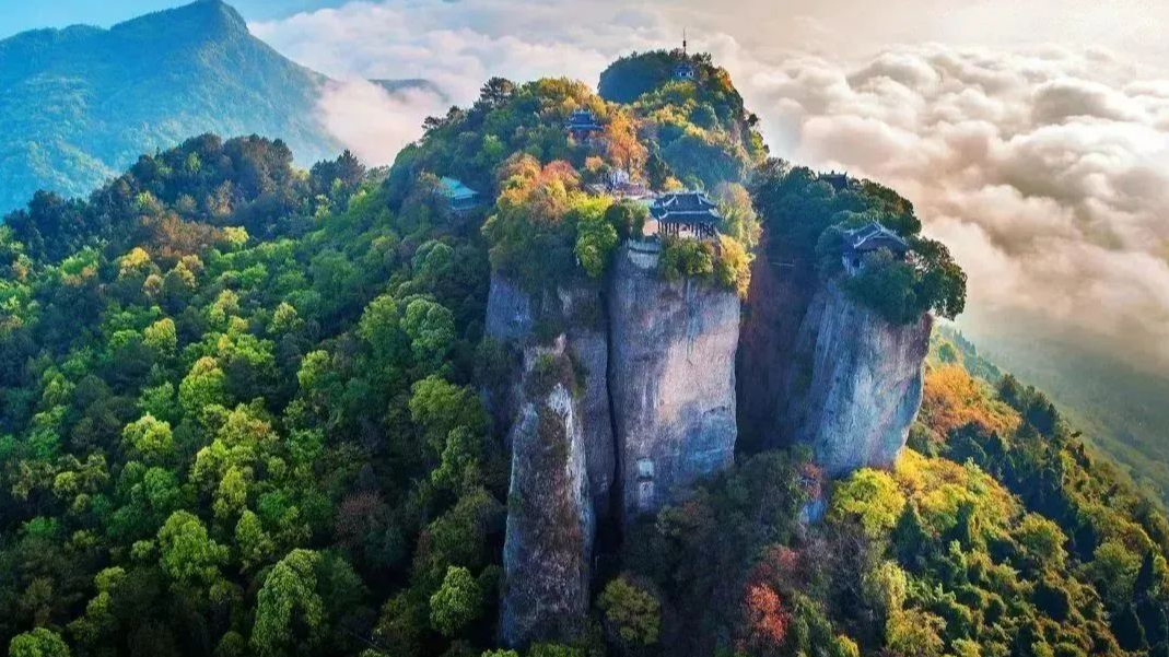 又名圌山,位于四川江油市城北20公里的涪江东岸。自麓至顶约5公里许,行道迂回盘旋,林木苍翠,景色秀丽。李白少年时曾游此山,题下千古绝句“樵夫与耕者,出入画屏中”,后国民党元老于右任手书镌刻于山中石碑之上。