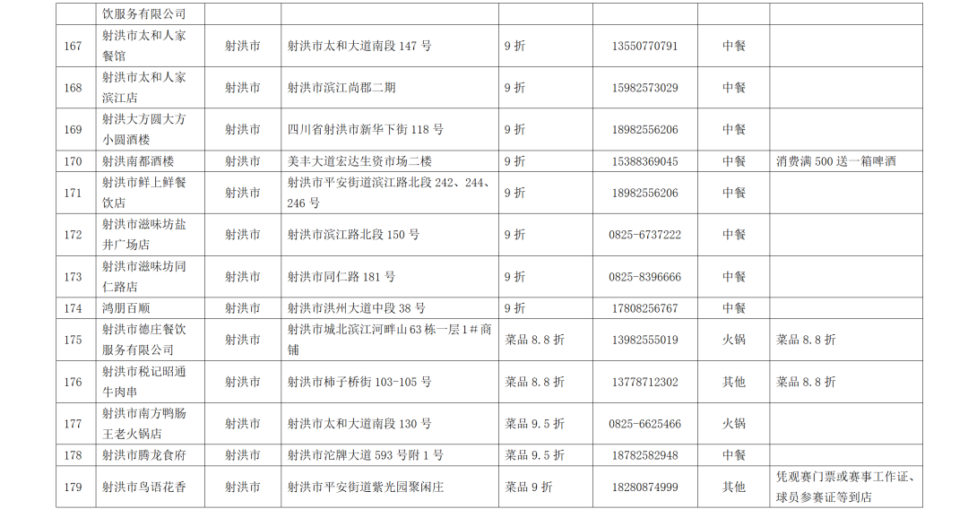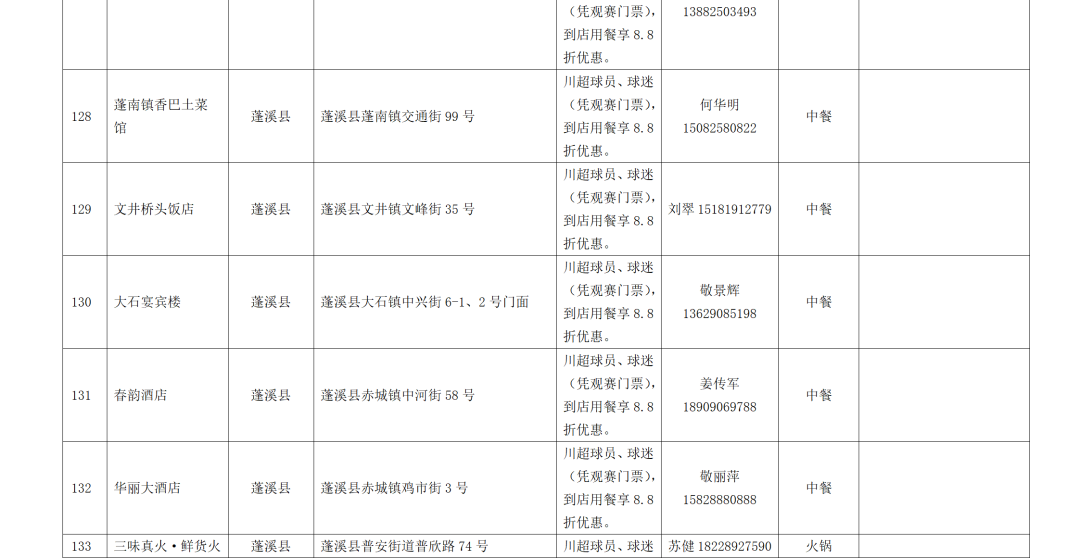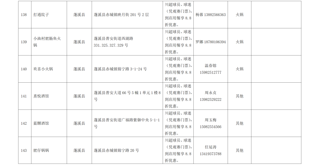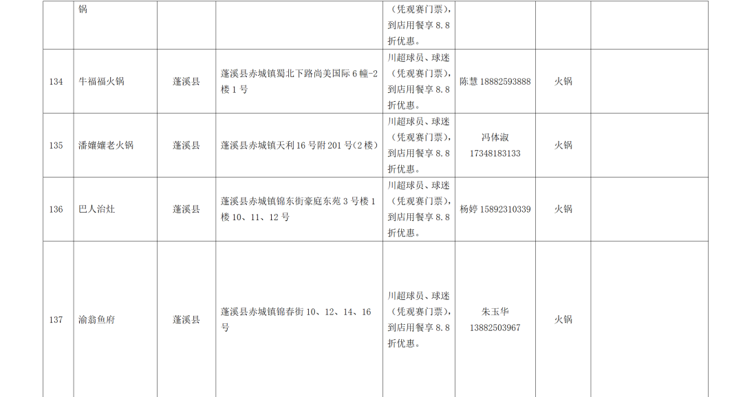 “川超”广安主场及后两天(共5次,15天),持“川超”广安主场票根及本人身份证的观赛者,持相关工作证件及本人身份证的“川超”球员、教练,持此时段广安市收费A级景区购票信息及身份证的游客。请前往广安主城区莲花北路12号、莲塘街36号门店,免费嗦岳池米粉,每天15碗送完即止。