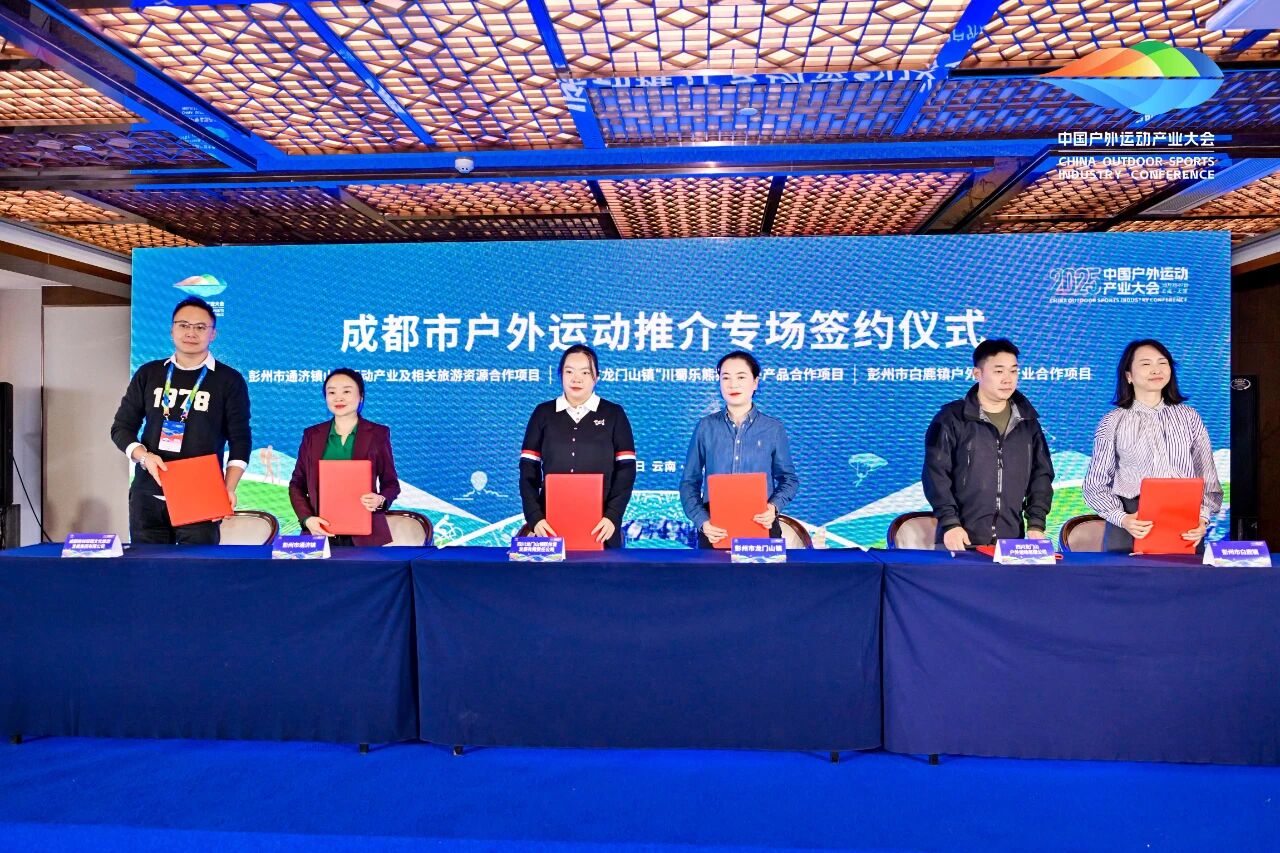推介会成果显著,一批高质量产业项目现场签约。彭州市达成了多项合作:与耀骑中国共建“耀骑中国成都基地”,引入国际骑行挑战体系;与四川天迈洲际合作建设“龙门山国际扁带中心”,并成功吸引全国扁带锦标赛落户;联合多家企业共同开发龙门山山地户外运动核心区,规划山地越野、攀岩、探洞等精品项目,致力打造国际影响力的户外运动休闲品牌和体育旅游目的地。