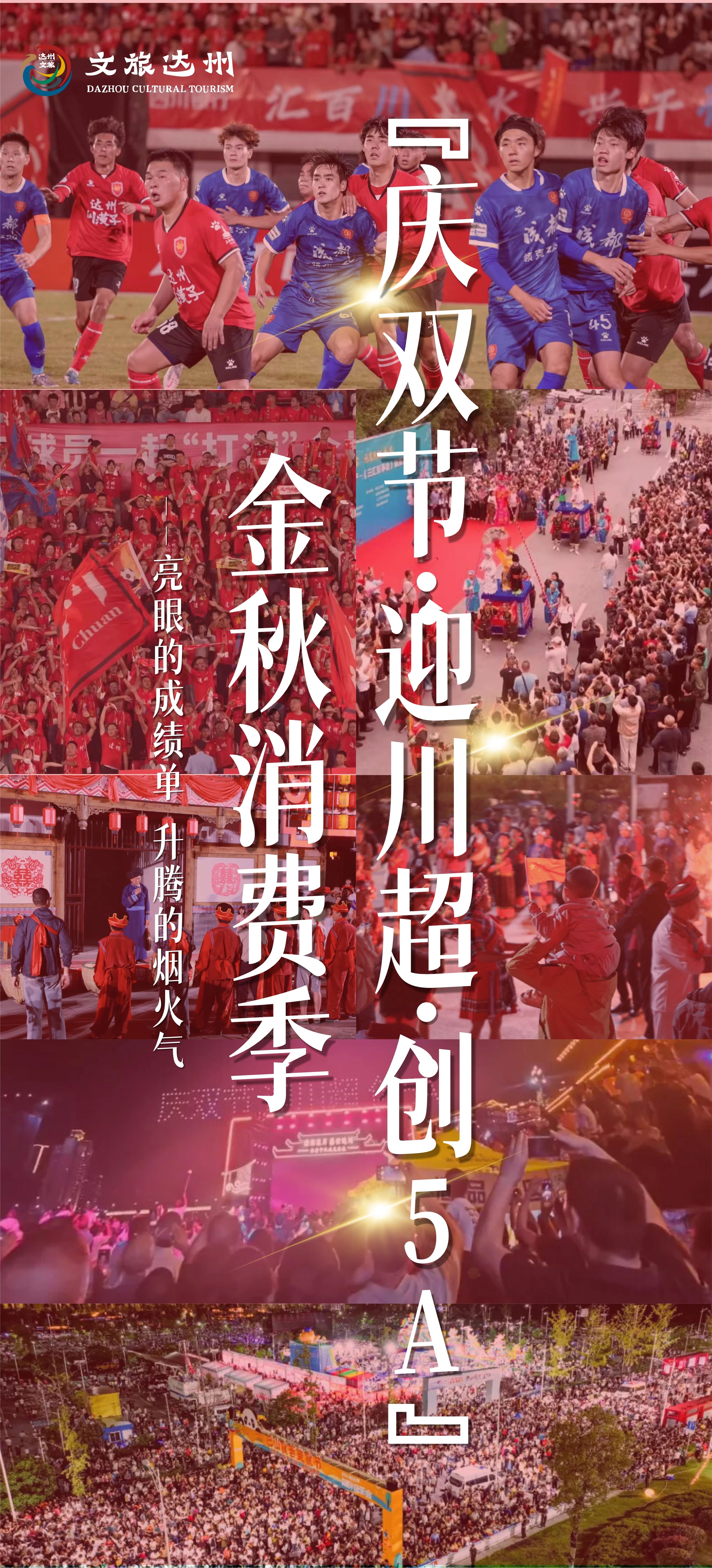 中秋遇见国庆,双节赋能文旅,达州围绕“庆双节 迎川超 创5A”金秋消费季主题,推出七大版块、百余场文体旅商融合消费活动,营造出“全城狂欢、全域热游”的假日氛围,吸引大批游客前来观赛、度假、品美食、赏非遗,文旅市场活力迸发,消费潜力持续释放,为游客献上了为期 8 天的文旅盛宴。