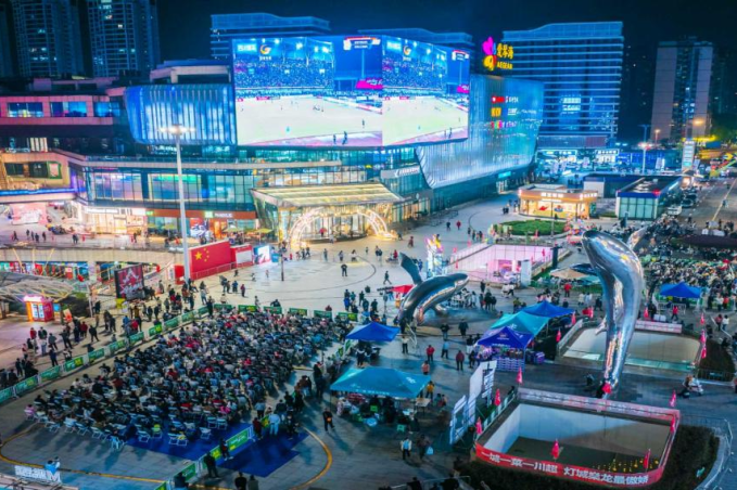 华商国际城:“城市会客厅,千人同频呐喊!” 巨型屏幕下的实时赛事,是“体育+”消费新场景的生动缩影。