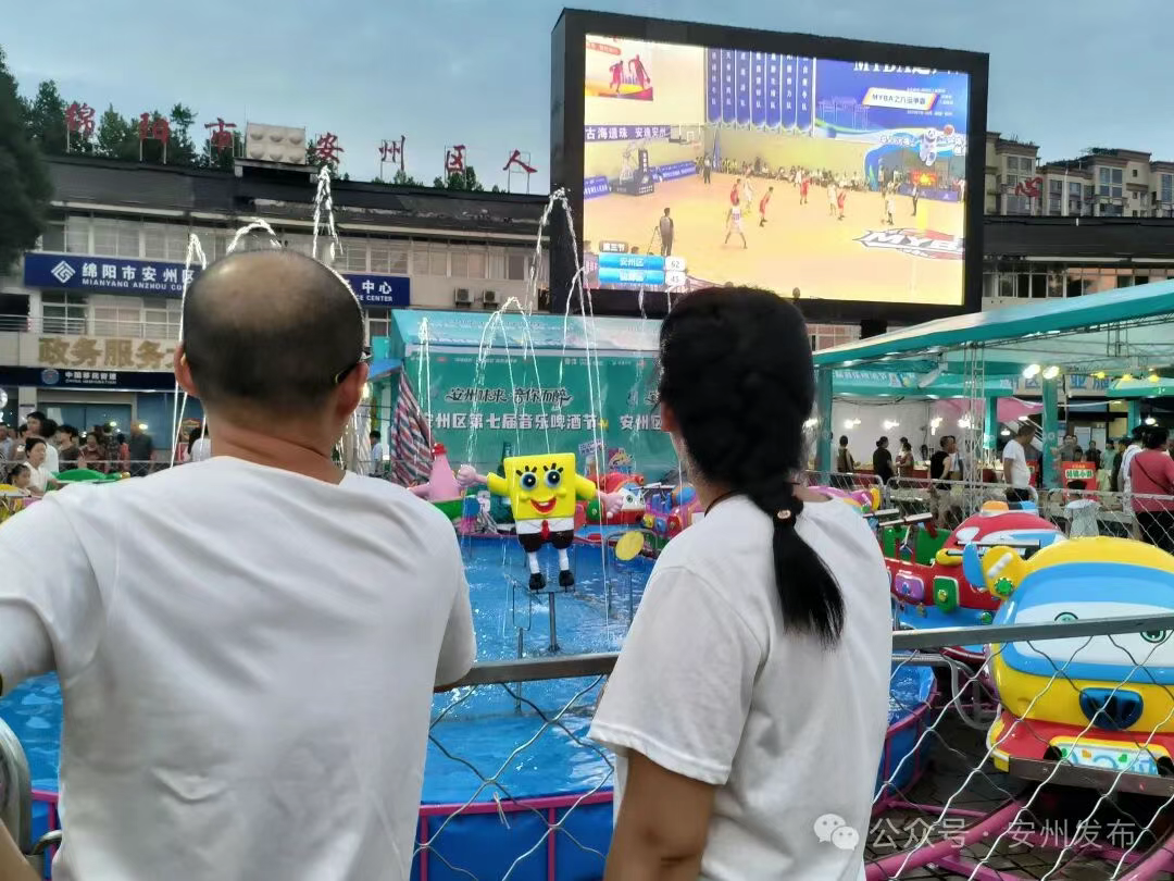 安州区第七届音乐啤酒节和MYBA安州VS仙海户外大屏直播,吸引无数市民喝啤酒吃美食看比赛。