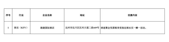 内 容:持工作证的参赛队员、裁判员及教练员、持巴中主场比赛票根的球迷和游客在经开万达、容邦万达、恩阳古镇、恩阳梦华录等商圈、综合体购物消费,即赠合作商户满减券、折扣券。