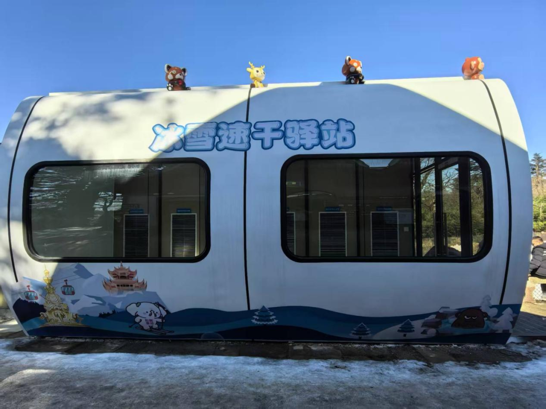 启动仪式结束后,峨眉山雷洞坪滑雪场便被欢笑声点燃,第27届峨眉山冰雪温泉季的多元乐趣在此铺展——滑板滑雪区里,滑雪者俯冲扬雪、初学者蹒跚学步,摔倒也笑意不减;冰雪童萌世界中,雪地转转、“坑爹过山车”等亲子项目前排起短队,父母的叮嘱与孩子的欢笑伴着雪地“咯吱”声回荡,6岁女孩杉杉裹着滑雪服,睫毛沾着雪粒兴奋地说:“雪地转转超好玩,和爸爸坐过山车笑到肚子疼,等彩虹滑道开放我要第一个冲!”观景台处,游客举着相机定格雪山雾凇与欢腾身影,从飞驰的滑雪者到盼着新项目的孩童,整个滑雪场满是全民参与的热闹与欢乐,生动诠释着冰雪运动的魅力。值得一提的是,今年峨眉山景区搭建了四川滑雪场内第一家冰雪速干驿站,专为解决滑雪后装备潮湿的痛点而来。驿站内的智能烘干设备无需复杂操作,只需将湿冷的滑雪靴、手套等放入,就能自动启动恒温热风模式,通过立体气流循环实现快速烘干。尤其对带娃出行的家庭而言,这一贴心设计堪称 “刚需配置”—— 孩子滑雪时活泼好动,衣物鞋袜极易被雪水浸透,若穿着湿冷衣物返程,很容易受凉感冒。有了冰雪速干驿站,家长们再也不用为孩子的湿衣烦恼,只需等待片刻,就能让孩子换上干爽温暖的衣物,让亲子冰雪之旅的舒适感与幸福感拉满。
