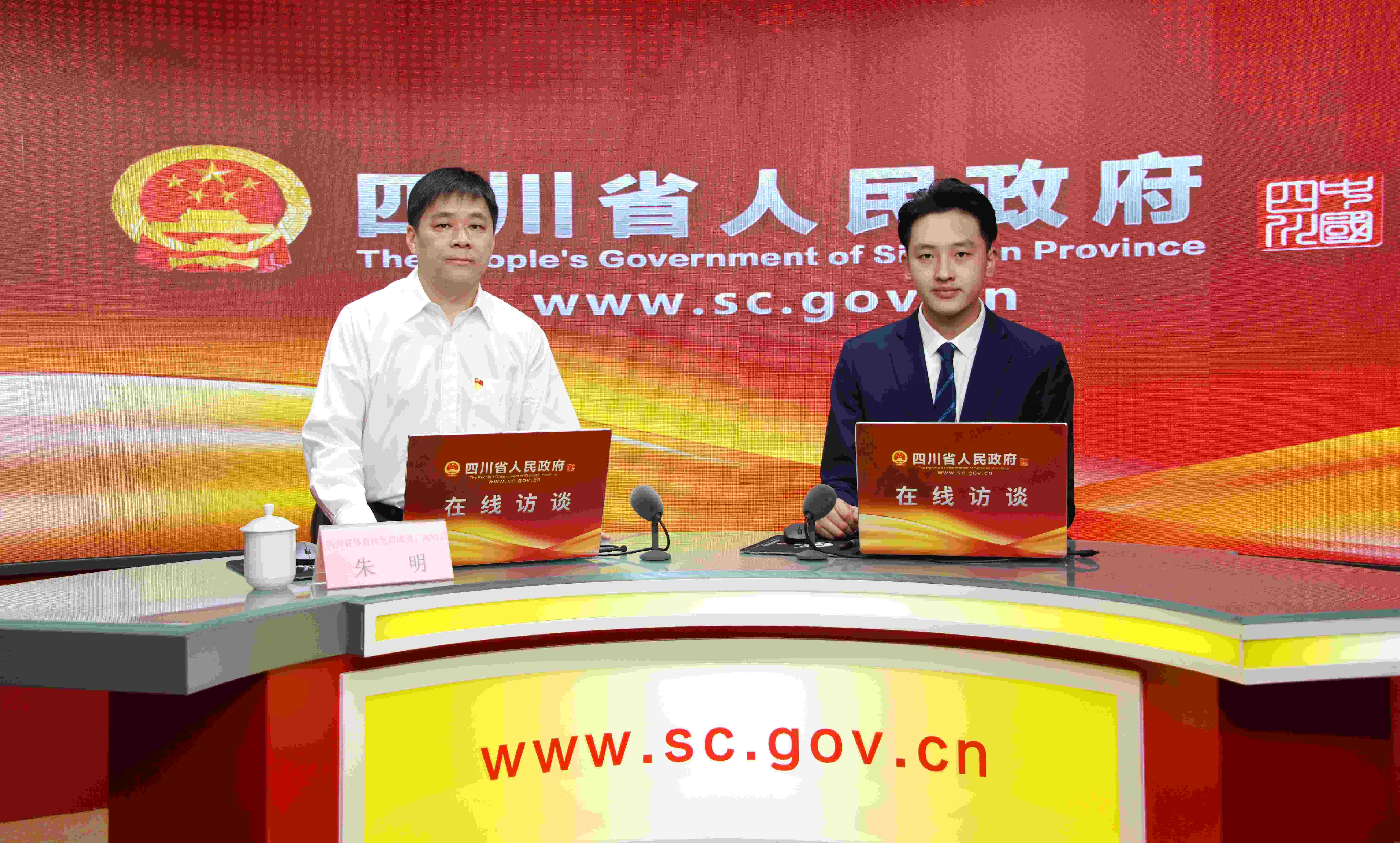 各位网友,大家下午好。欢迎参与四川省人民政府网站在线访谈栏目。近日,省政府印发《四川省全民健身实施计划》(以下简称《实施计划》),《实施计划》针对四川省全民健身工作中存在的痛点、难点,进行了系统性梳理,并提出在十四五期间要加快实施群众体育五大工程、十三项行动,构建更高水平的全民健身公共服务体系。为了让广大网友深入了解《实施计划》的有关内容,今天,我们有幸邀请到了四川省体育局党组成员、副局长朱明来到省政府网站,解读文件并与广大网友进行在线交流。同时,今天来到我们直播间的还有一位嘉宾群众体育处处长徐庆愿,欢迎您。今天我们的直播也将联合新华网、四川发布、四川观察、川观新闻、封面新闻、四川IPTV熊猫新闻频道等平台同步直播,欢迎各位网友通过以上平台积极参与访谈互动。朱局长,您好,首先请你给我们的广大网友朋友们打个招呼吧。